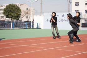 趕小豬游戲中,我們的女同胞們拍起籃球來個(gè)個(gè)英姿颯爽