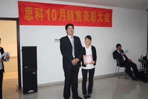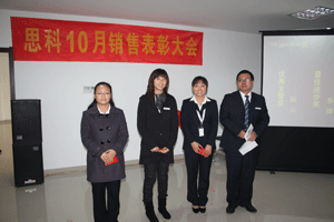 11月7日下午,思科10月銷售表彰大會(huì)在鹽城國(guó)際軟件園5樓召開。這次我們以別開生面的方式開展了這次銷售大會(huì)。會(huì)議開始,我們并沒有向往常一樣頒發(fā)獎(jiǎng)項(xiàng)。在主持人的帶領(lǐng)下,我們玩了大量的團(tuán)隊(duì)游戲,游戲提高了我們的熱情,大家都興致高漲,不僅放松了一個(gè)月以來緊張的心情,也給我們帶來了無比的快樂。