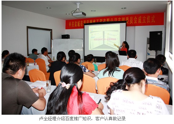 7月鹽城時(shí)而酷暑難當(dāng);時(shí)而天高氣爽;時(shí)而烈日當(dāng)空;時(shí)而暴雨傾盆。16日下午,整個(gè)鹽城市區(qū)深陷暴雨包圍,然而密集的雨滴并不能澆滅客戶對(duì)百度推廣知識(shí)的渴求熱情。經(jīng)過(guò)思科公司客服部、市場(chǎng)部?jī)纱蟛块T多位員工的細(xì)密而周到安排,14:30左右,主題為“新媒體 精準(zhǔn)互動(dòng)新營(yíng)銷”百度推廣客戶交流會(huì)在公司會(huì)議室順利召開。