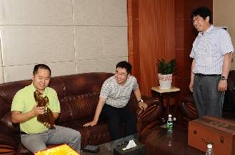 百度領(lǐng)導(dǎo)帶來的寓意深遠的精美禮品在贈送儀式開始之前,鞏總、金總認真查看禮品